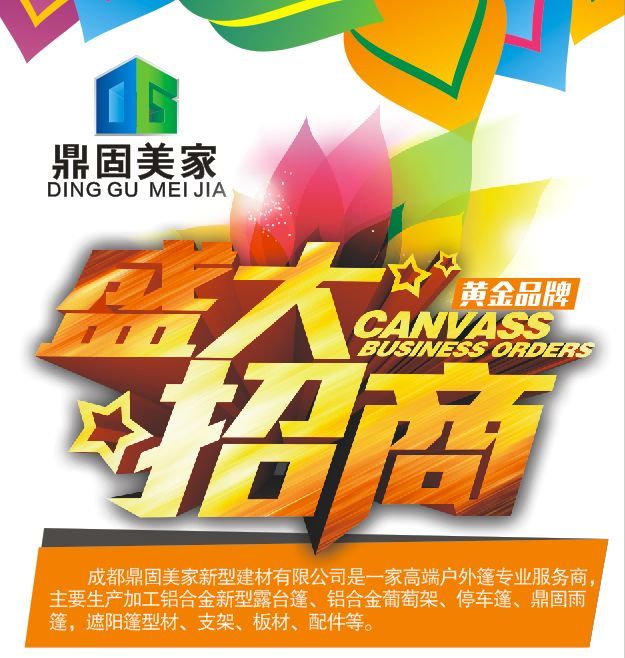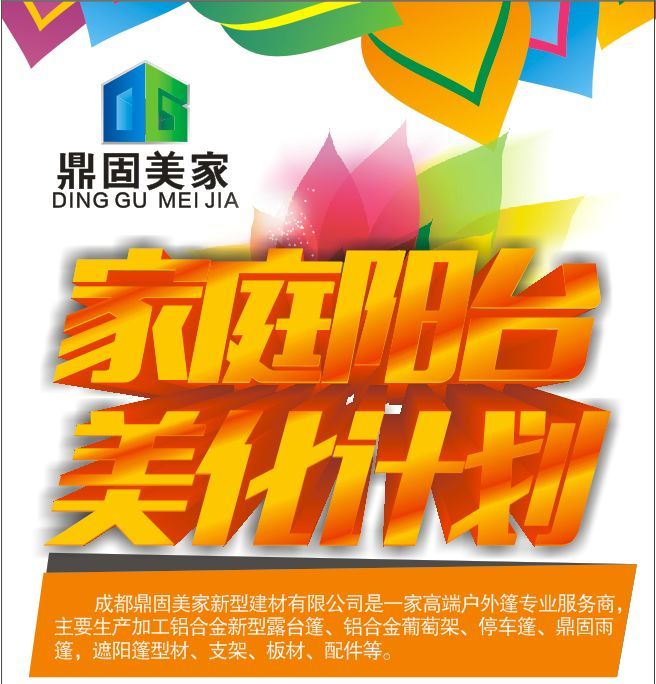 我們專業(yè)致力于鋁合金露臺篷,停車篷,陽臺篷,遮陽篷,鼎固專利雨篷的生產(chǎn)推廣銷售服務(wù)----鼎固美家是你創(chuàng)業(yè)合作的最佳選擇!鼎固相伴!風雨無憂!